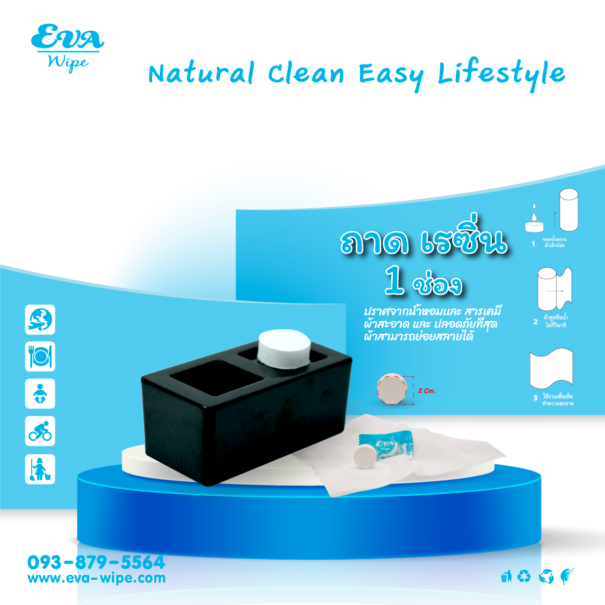วิธีใช้ นำผ้ามาวางบน ถาดเรซิ่น ช่องที่ 1 และ น้ำใส่ในช่องที่ 2 ก่อนนำไปวางให้ลูกค้า
