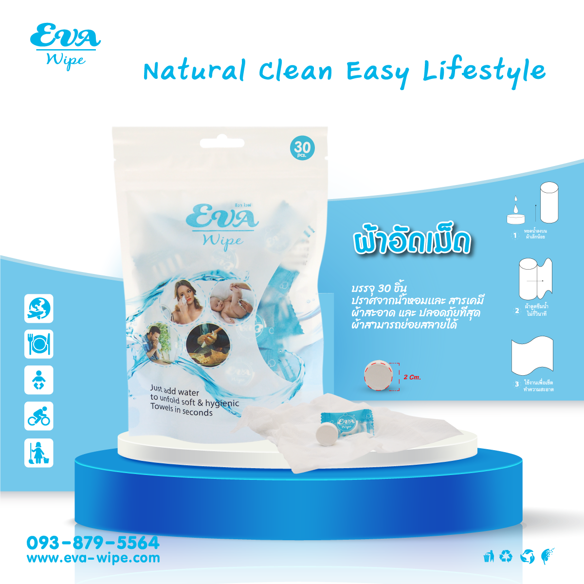 ผ้าอเนกประสงค์อัดเม็ด ” EVA WIPE”