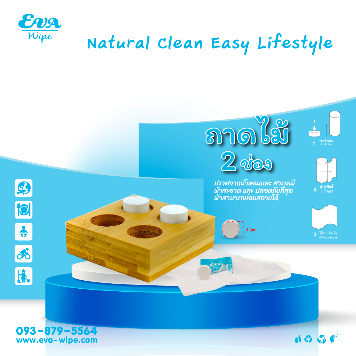 ถาดไม้ ใส่ผ้าอัดเม็ด แบบ 2 ช่อง Bamboo tray towel